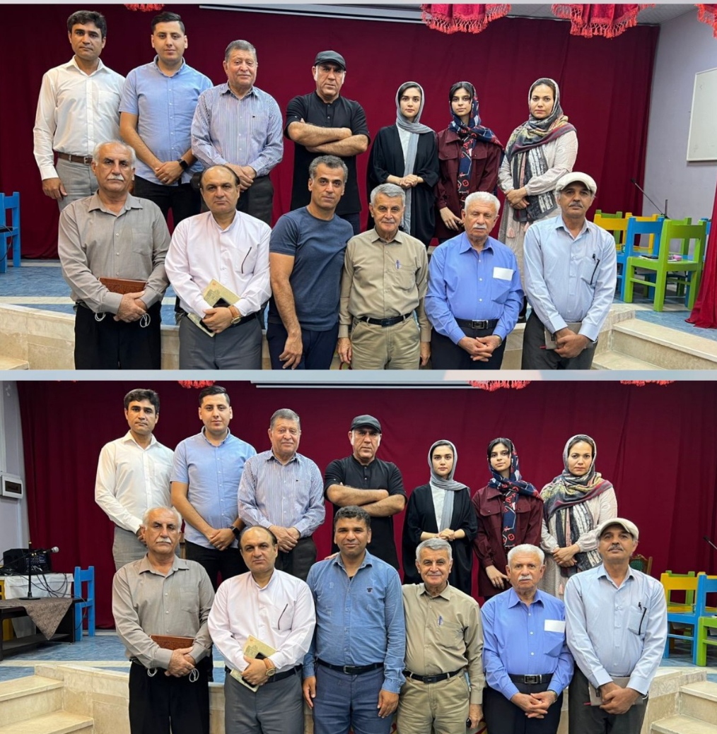 حاضران در جلسه آقایان حاج سید قاسم موسوی، سید مهدی دانش، سجاد دانشآموز و خانمها عهدیه کاووسی با دختر گلشون رها کرمپور، فرشته کاووسی، همگی اعضای انجمن باران